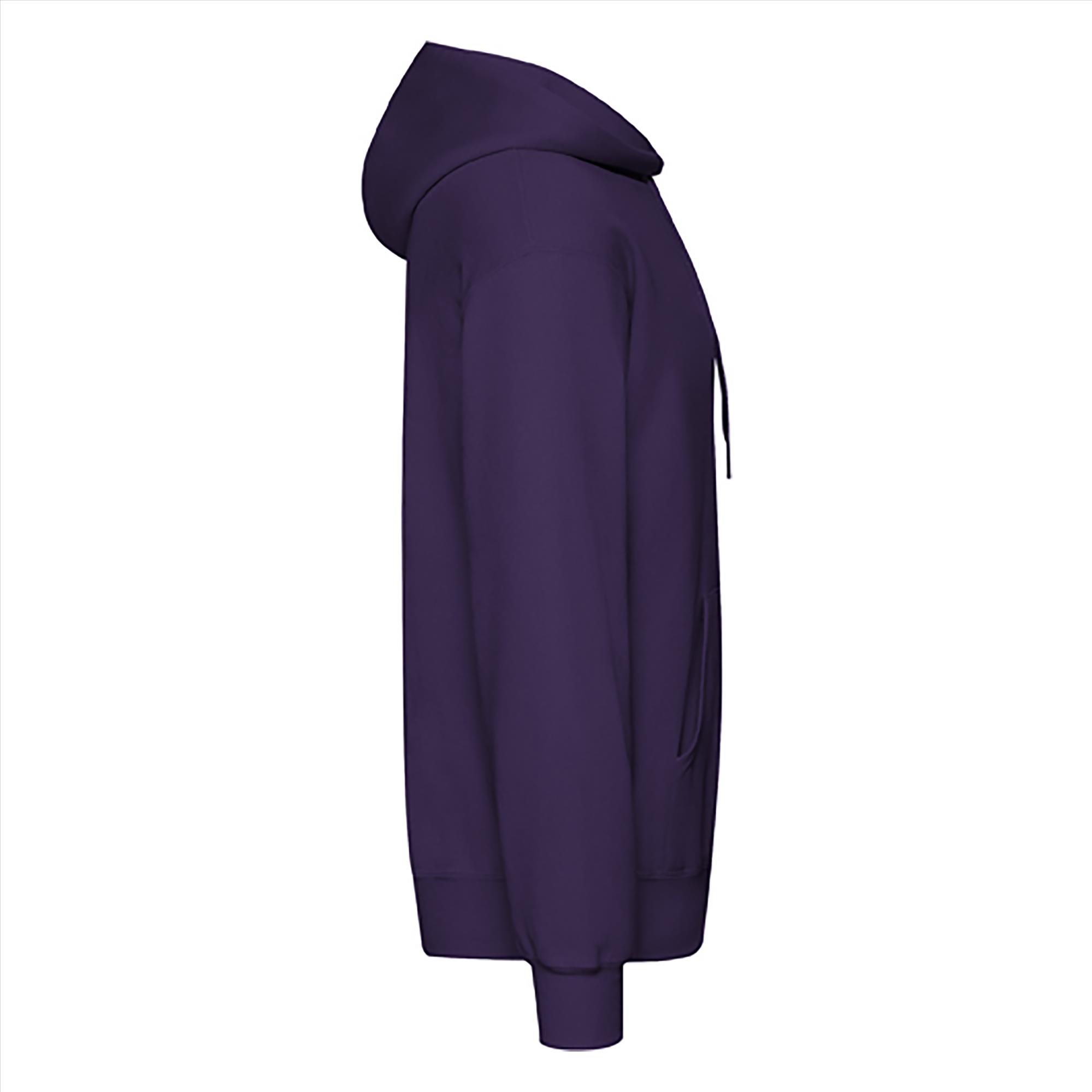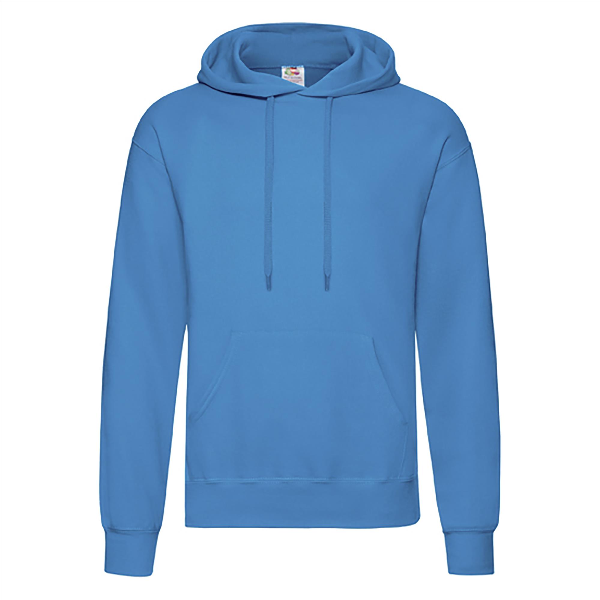 De Fruit of the Loom Classic Hooded Sweat is een comfortabele en veelzijdige hoodie van basic kwaliteit, ideaal voor dagelijks gebruik, teams, scholen of promotionele acties. Deze hoodie heeft een gevoerde capuchon met plat trekkoord in dezelfde kleur en een praktische kangoeroezak. De boorden zijn afgewerkt met Cotton-Lycra® rib, waardoor de hoodie mooi in model blijft.